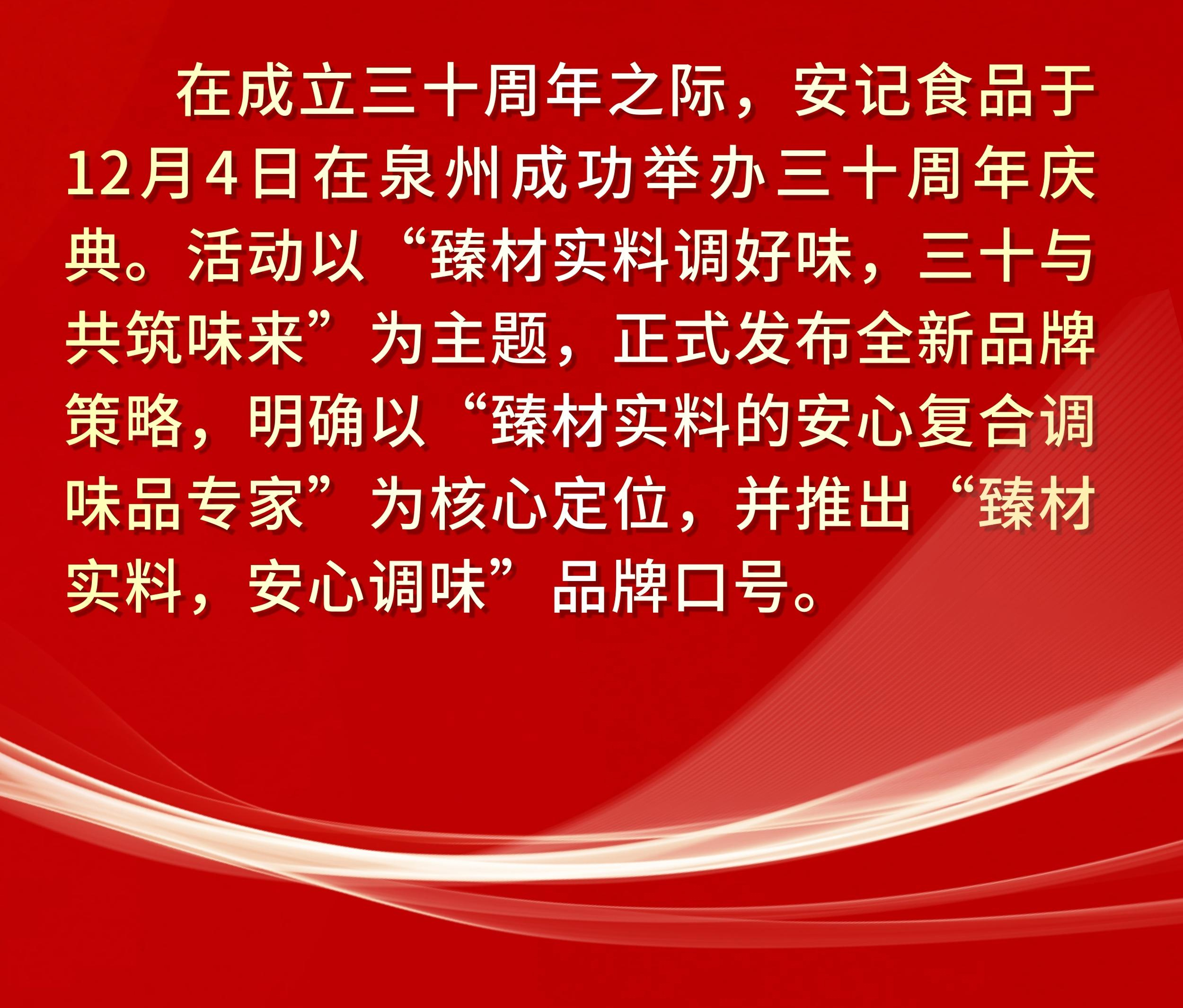 “臻材實料調(diào)好味,三十與共筑味來”| 安記食品成立30周年暨上市十周年慶典圓滿成功